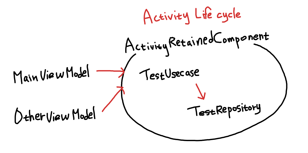 ViewModel에서 상위 Scope인 ActivityRetainedScope로 지정된 UseCase를 주입받아 사용하고 있으므로,