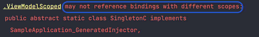 위와 같이 ActivityRetainedScope에서 하위 Scope인 ViewModelComponent로 지정된 Repository를 사용하려고 하면 에러가 발생합니다.