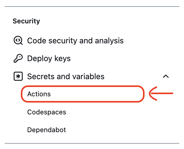 Secret은 Repository의 Settings > Security 에서 추가할 수 있습니다.