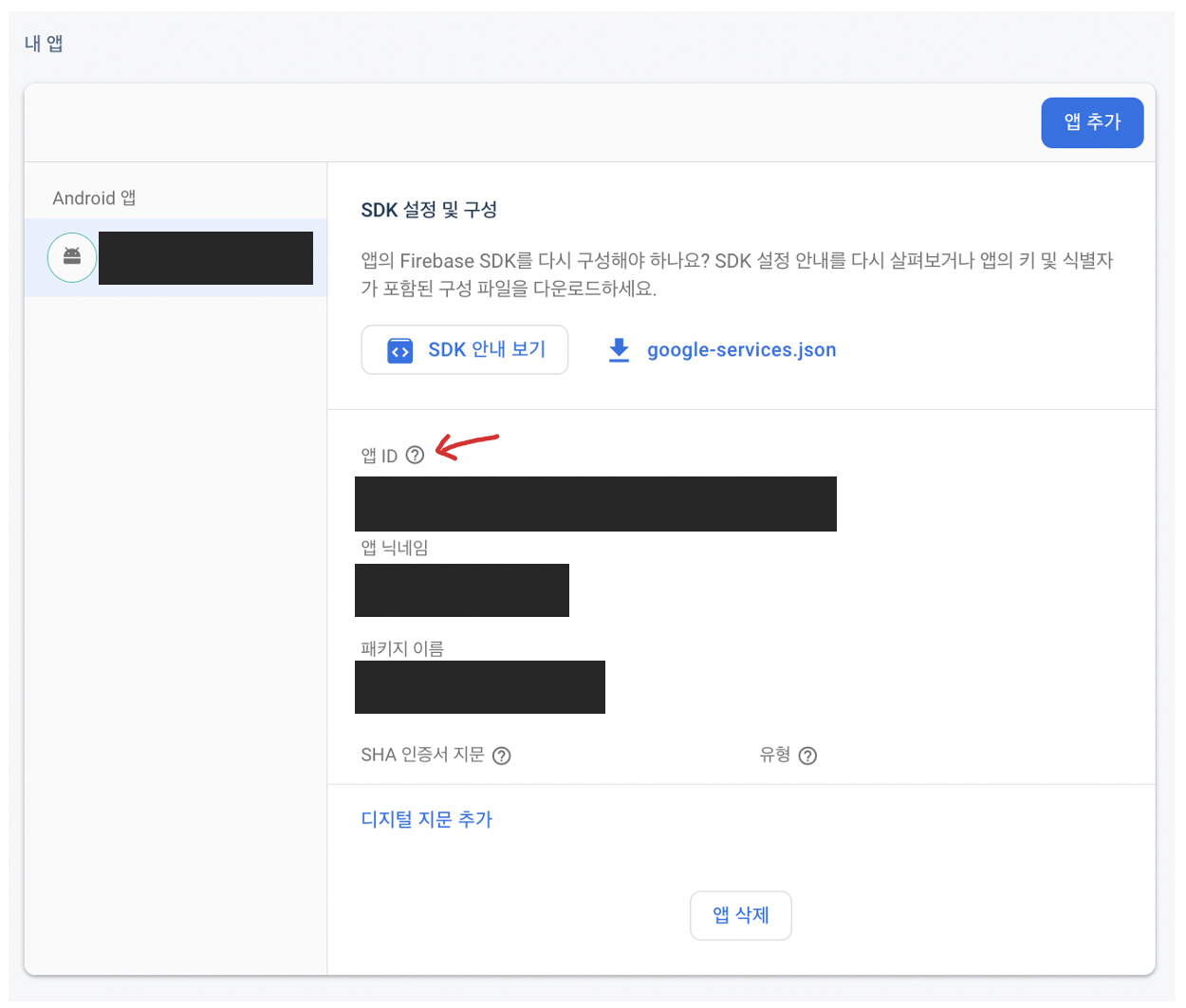 Project와 앱을 생성하게 되면 아래와 같이 APP ID를 확인할 수 있습니다.
