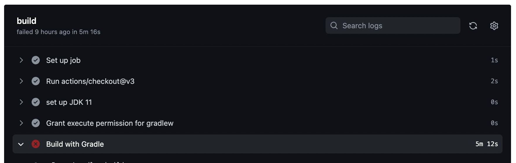 만약 build 도중 문제가 생긴다면 해당 job의 세부사항을 통해 원인을 분석할 수 있습니다.(크으..)