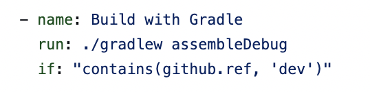 위에서 보았던 공통 action을 수행한 이후에 dev branch인 경우, 아래와 같이 build를 수행하게 됩니다.