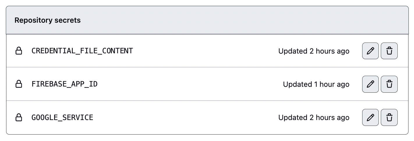 이전에 Secret에 대해 설명할 때 FIREBASE_APP_ID와 CREDENTIAL_FILE_CONTENT를 생성하였다고 말씀드렸습니다.